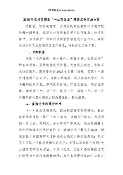 【七哥公文】2025年:【七哥公文】2025年农村改厕及“一站两体系”建设工作实施方案+更多免费公文+VX:QiGeGongWen2024+更多免费公文+VX:QiGeGongWen2024