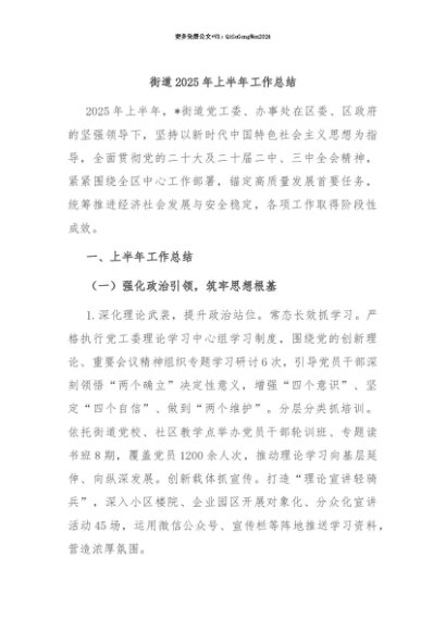 【七哥公文】2025年:【七哥公文】街道2025年上半年工作总结+更多免费公文+VX:QiGeGongWen2024+更多免费公文+VX:QiGeGongWen2024