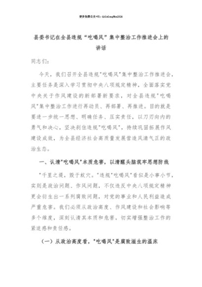 【七哥公文】2025年:【七哥公文】县委书记在全县违规“吃喝风”集中整治工作推进会上的讲话+更多免费公文+VX:QiGeGongWen2024+更多免费公文+VX:QiGeGongWen2024