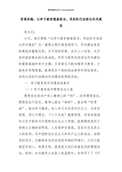 【七哥公文】2025年:【七哥公文】党课讲稿:以学习教育强基固本,用实际行动深化作风建设+更多免费公文+VX:QiGeGongWen2024+更多免费公文+VX:QiGeGongWen2024