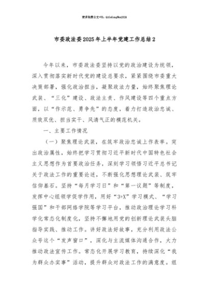 【七哥公文】2025年:【七哥公文】市委政法委2025年上半年党建工作总结2+更多免费公文+VX:QiGeGongWen2024+更多免费公文+VX:QiGeGongWen2024