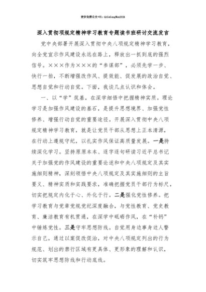 【七哥公文】2025年:【七哥公文】深入贯彻项规定精神学习教育专题读书班研讨交流发言+更多免费公文+VX:QiGeGongWen2024+更多免费公文+VX:QiGeGongWen2024