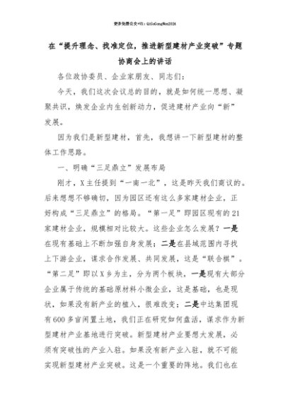 【七哥公文】2025年:【七哥公文】在“提升理念、找准定位,推进新型建材产业突破”专题协商会上的讲话+更多免费公文+VX:QiGeGongWen2024+更多免费公文+VX:QiGeGongWen2024