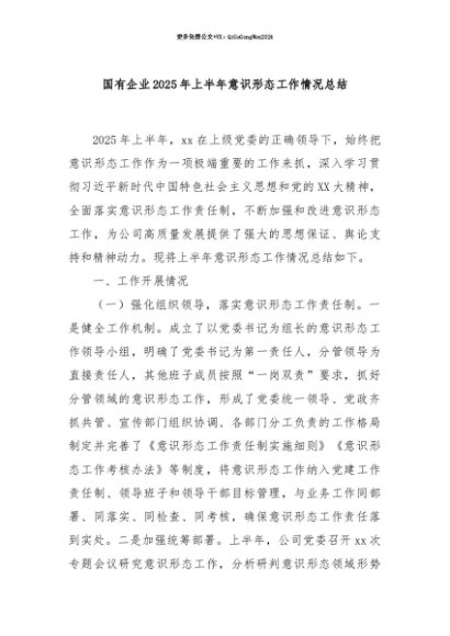 【七哥公文】2025年:【七哥公文】国有企业2025年上半年意识形态工作情况总结+更多免费公文+VX:QiGeGongWen2024+更多免费公文+VX:QiGeGongWen2024