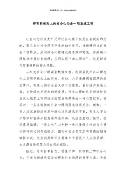 【七哥公文】2025年:【七哥公文】培育积极向上的社会心态是一项系统工程+更多免费公文+VX:QiGeGongWen2024+更多免费公文+VX:QiGeGongWen2024
