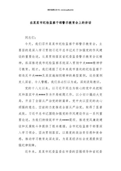 【七哥公文】2025年:【七哥公文】在某某市纪检监察干部警示教育会上的讲话+更多免费公文+VX:QiGeGongWen2024+更多免费公文+VX:QiGeGongWen2024