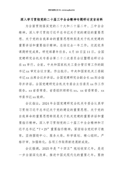 【七哥公文】2025年:【七哥公文】深入学习贯彻党的二十届三中全会精神专题研讨发言材料+更多免费公文+VX:QiGeGongWen2024+更多免费公文+VX:QiGeGongWen2024