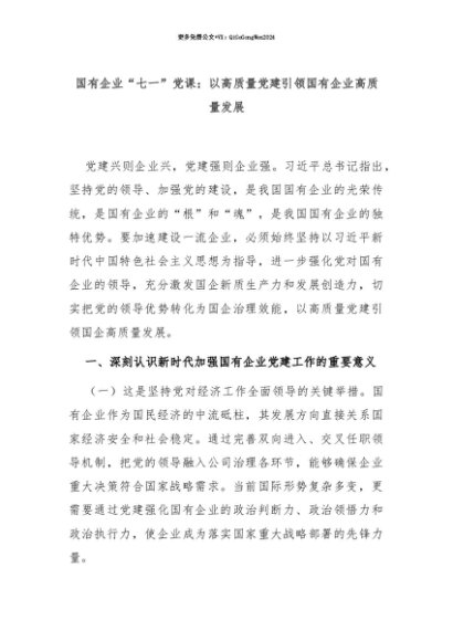 【七哥公文】2025年:【七哥公文】国有企业“七一”党课:以高质量党建引领国有企业高质量发展+更多免费公文+VX:QiGeGongWen2024+更多免费公文+VX:QiGeGongWen2024