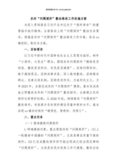 【七哥公文】2025年:【七哥公文】农村“问题厕所”整治推进工作实施方案+更多免费公文+VX:QiGeGongWen2024+更多免费公文+VX:QiGeGongWen2024