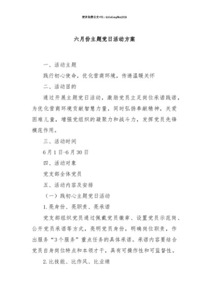 【七哥公文】2025年:【七哥公文】六月份主题党日活动方案+更多免费公文+VX:QiGeGongWen2024+更多免费公文+VX:QiGeGongWen2024
