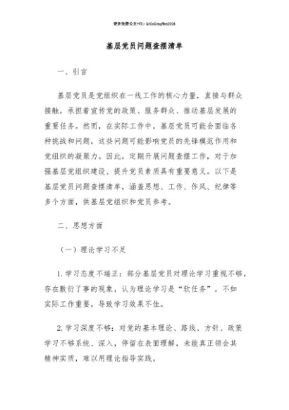【七哥公文】2025年:【七哥公文】基层党员问题查摆清单+更多免费公文+VX:QiGeGongWen2024+更多免费公文+VX:QiGeGongWen2024