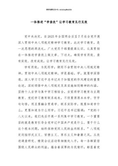 【七哥公文】2025年:【七哥公文】一体推进“学查改”让学习教育见行见效+更多免费公文+VX:QiGeGongWen2024+更多免费公文+VX:QiGeGongWen2024