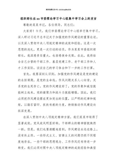 【七哥公文】2025年:【七哥公文】组织部长在xx市委理论学习中心组集中学习会上的发言+更多免费公文+VX:QiGeGongWen2024+更多免费公文+VX:QiGeGongWen2024