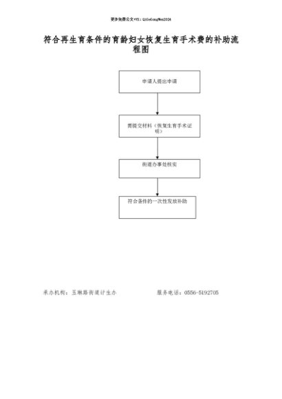 【七哥公文】2025年:【七哥公文】符合再生育条件的育龄妇女恢复生育手术费的补助流程图+更多免费公文+VX:QiGeGongWen2024+更多免费公文+VX:QiGeGongWen2024