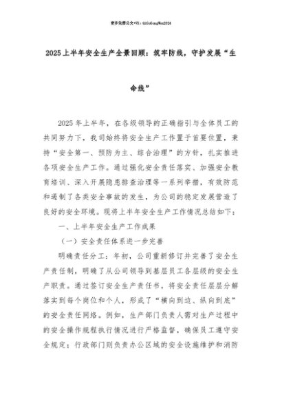 【七哥公文】2025年:【七哥公文】2025上半年安全生产全景回顾:筑牢防线,守护发展“生命线”+更多免费公文+VX:QiGeGongWen2024+更多免费公文+VX:QiGeGongWen2024
