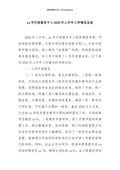 【七哥公文】2025年:【七哥公文】xx市行政服务中心2025年上半年工作情况总结+更多免费公文+VX:QiGeGongWen2024+更多免费公文+VX:QiGeGongWen2024