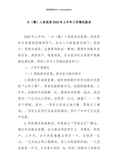 【七哥公文】2025年:【七哥公文】乡(镇)人民政府2025年上半年工作情况报告+更多免费公文+VX:QiGeGongWen2024+更多免费公文+VX:QiGeGongWen2024