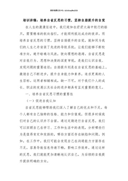 【七哥公文】2025年:【七哥公文】培训讲稿:培养自省反思的习惯,坚持自励提升的自觉+更多免费公文+VX:QiGeGongWen2024+更多免费公文+VX:QiGeGongWen2024
