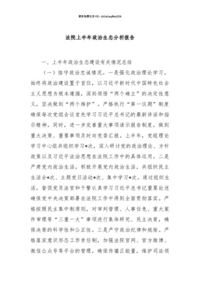 【七哥公文】2025年:【七哥公文】法院上半年政治生态分析报告+更多免费公文+VX:QiGeGongWen2024+更多免费公文+VX:QiGeGongWen2024