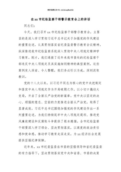 【七哥公文】2025年:【七哥公文】在xx市纪检监察干部警示教育会上的讲话+更多免费公文+VX:QiGeGongWen2024+更多免费公文+VX:QiGeGongWen2024