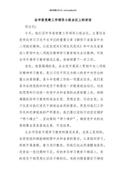 【七哥公文】2025年:【七哥公文】在市委党建工作领导小组会议上的讲话+更多免费公文+VX:QiGeGongWen2024+更多免费公文+VX:QiGeGongWen2024