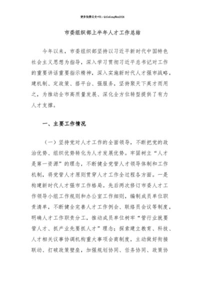 【七哥公文】2025年:【七哥公文】市委组织部上半年人才工作总结+更多免费公文+VX:QiGeGongWen2024+更多免费公文+VX:QiGeGongWen2024