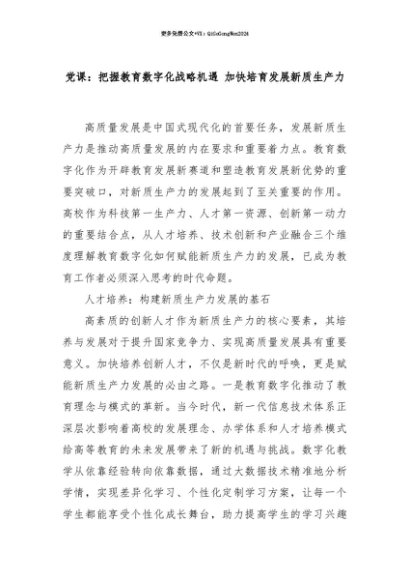 【七哥公文】2025年:【七哥公文】党课:把握教育数字化战略机遇 加快培育发展新质生产力+更多免费公文+VX:QiGeGongWen2024+更多免费公文+VX:QiGeGongWen2024