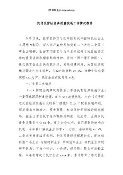 【七哥公文】2025年:【七哥公文】促进民营经济高质量发展工作情况报告+更多免费公文+VX:QiGeGongWen2024+更多免费公文+VX:QiGeGongWen2024