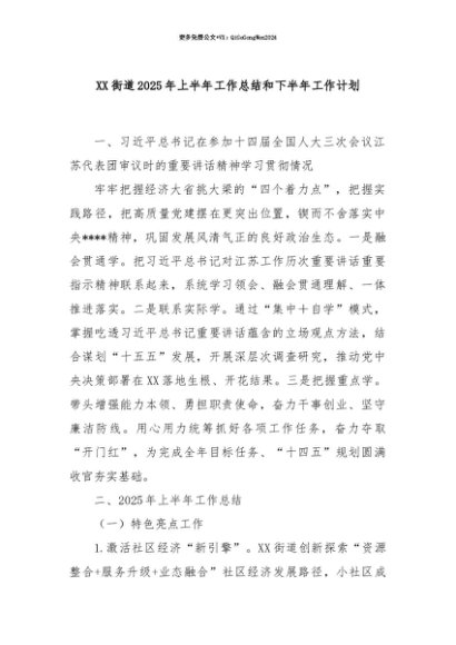 【七哥公文】2025年:【七哥公文】XX街道2025年上半年工作总结和下半年工作计划+更多免费公文+VX:QiGeGongWen2024+更多免费公文+VX:QiGeGongWen2024
