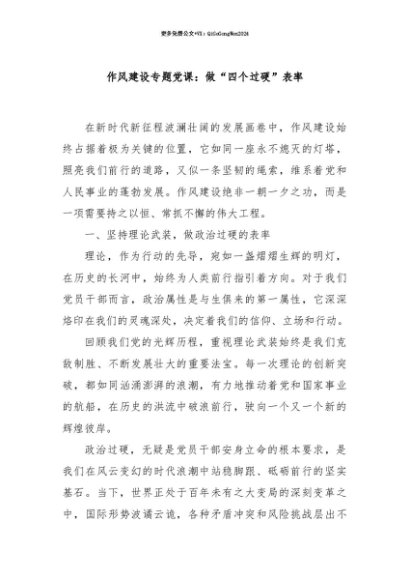 【七哥公文】2025年:【七哥公文】作风建设专题党课:做“四个过硬”表率+更多免费公文+VX:QiGeGongWen2024+更多免费公文+VX:QiGeGongWen2024