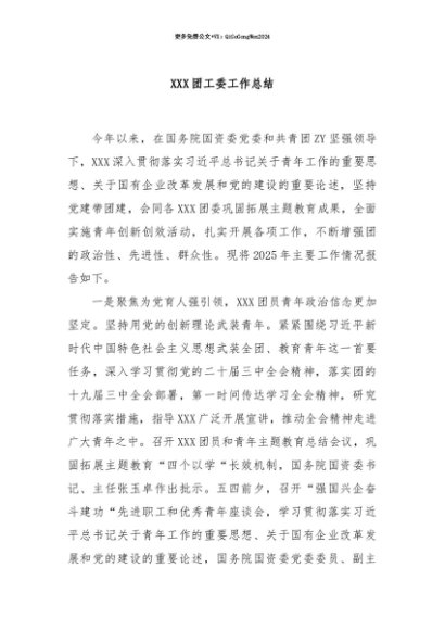 【七哥公文】2025年:【七哥公文】XXX团工委工作总结+更多免费公文+VX:QiGeGongWen2024+更多免费公文+VX:QiGeGongWen2024
