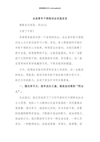 【七哥公文】2025年:【七哥公文】全县青年干部培训会交流发言+更多免费公文+VX:QiGeGongWen2024+更多免费公文+VX:QiGeGongWen2024