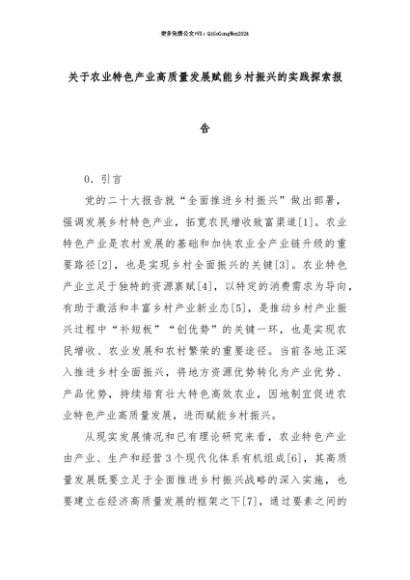 【七哥公文】2025年:【七哥公文】关于农业特色产业高质量发展赋能乡村振兴的实践探索报告+更多免费公文+VX:QiGeGongWen2024+更多免费公文+VX:QiGeGongWen2024