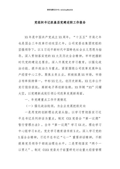 【七哥公文】2025年:【七哥公文】党组织书记抓基层党建述职工作报告+更多免费公文+VX:QiGeGongWen2024+更多免费公文+VX:QiGeGongWen2024