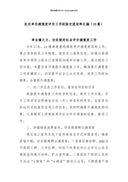 【七哥公文】2025年:【七哥公文】(10篇)机关单位满意度评价工作经验交流材料汇编+更多免费公文+VX:QiGeGongWen2024+更多免费公文+VX:QiGeGongWen2024