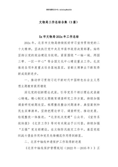 【七哥公文】2025年:【七哥公文】(3篇)文物局工作总结合集+更多免费公文+VX:QiGeGongWen2024+更多免费公文+VX:QiGeGongWen2024