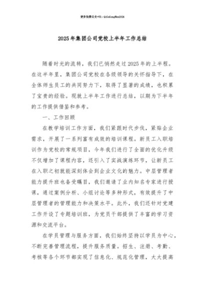 【七哥公文】2025年:【七哥公文】2025年集团公司党校上半年工作总结+更多免费公文+VX:QiGeGongWen2024+更多免费公文+VX:QiGeGongWen2024