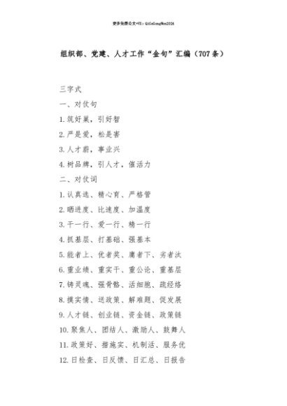 【七哥公文】2025年:【七哥公文】组织部、党建、人才工作“金句”汇编(707条)+更多免费公文+VX:QiGeGongWen2024+更多免费公文+VX:QiGeGongWen2024