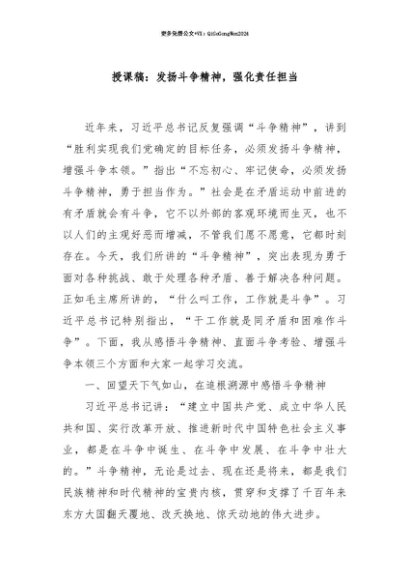 【七哥公文】2025年:【七哥公文】授课稿:发扬斗争精神,强化责任担当+更多免费公文+VX:QiGeGongWen2024+更多免费公文+VX:QiGeGongWen2024