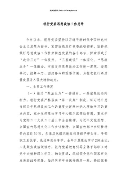 【七哥公文】2025年:【七哥公文】银行党委思想政治工作总结+更多免费公文+VX:QiGeGongWen2024+更多免费公文+VX:QiGeGongWen2024