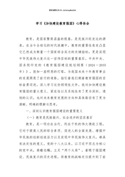 【七哥公文】2025年:【七哥公文】学习《加快建设教育强国》心得体会+更多免费公文+VX:QiGeGongWen2024+更多免费公文+VX:QiGeGongWen2024
