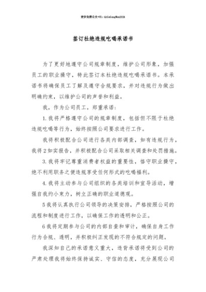 【七哥公文】2025年:【七哥公文】签订杜绝违规吃喝承诺书+更多免费公文+VX:QiGeGongWen2024+更多免费公文+VX:QiGeGongWen2024