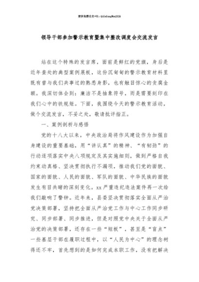 【七哥公文】2025年:【七哥公文】领导干部参加警示教育暨集中整改调度会交流发言+更多免费公文+VX:QiGeGongWen2024+更多免费公文+VX:QiGeGongWen2024