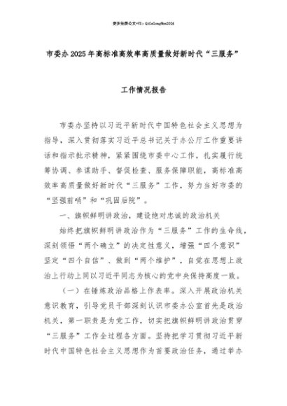【七哥公文】2025年:【七哥公文】市委办2025年高标准高效率高质量做好新时代“三服务”工作情况报告+更多免费公文+VX:QiGeGongWen2024+更多免费公文+VX:QiGeGongWen2024
