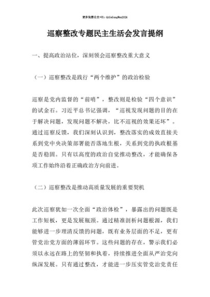 【七哥公文】2025年:【七哥公文】巡察整改专题民主生活会发言提纲+更多免费公文+VX:QiGeGongWen2024+更多免费公文+VX:QiGeGongWen2024