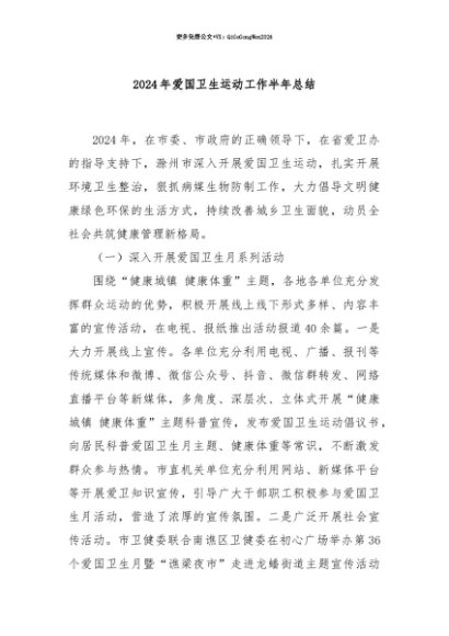 【七哥公文】2025年:【七哥公文】2024年爱国卫生运动工作半年总结+更多免费公文+VX:QiGeGongWen2024+更多免费公文+VX:QiGeGongWen2024