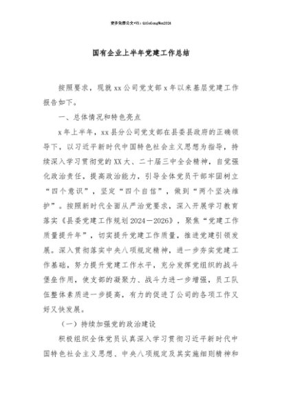 【七哥公文】2025年:【七哥公文】国有企业上半年党建工作总结+更多免费公文+VX:QiGeGongWen2024+更多免费公文+VX:QiGeGongWen2024