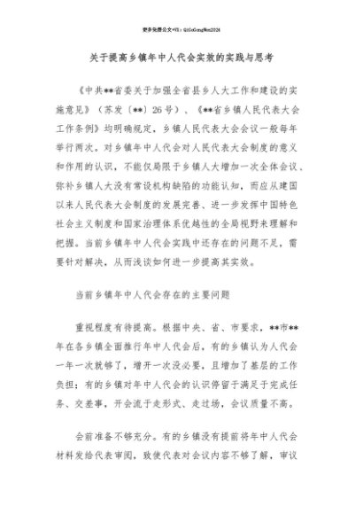 【七哥公文】2025年:【七哥公文】关于提高乡镇年中人代会实效的实践与思考+更多免费公文+VX:QiGeGongWen2024+更多免费公文+VX:QiGeGongWen2024