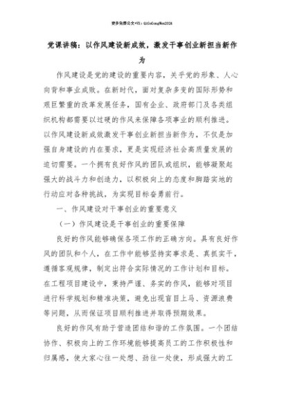 【七哥公文】2025年:【七哥公文】党课讲稿:以作风建设新成效,激发干事创业新担当新作为+更多免费公文+VX:QiGeGongWen2024+更多免费公文+VX:QiGeGongWen2024