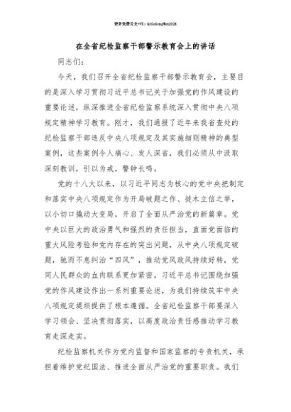 【七哥公文】2025年:【七哥公文】在全省纪检监察干部警示教育会上的讲话+更多免费公文+VX:QiGeGongWen2024+更多免费公文+VX:QiGeGongWen2024